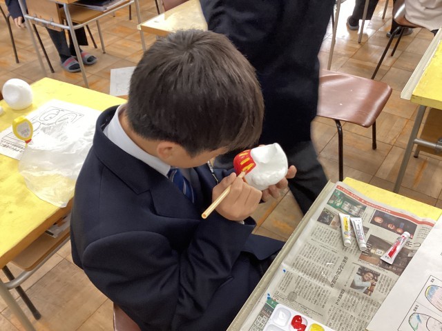 1年1組の美術では、オリジナルキャラクターのだるまを制作していました。色や形、表情までこだわって工夫を凝らし、みんな集中して取り組んでいました。それぞれの個性がしっかり表れた、見ていて楽しい作品ができ...