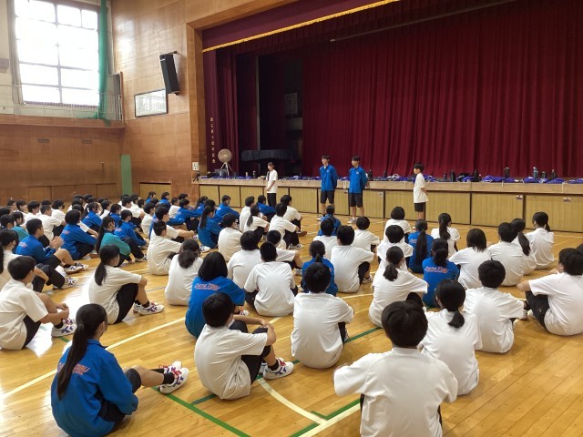 中間テスト終了後、体育館で全校集会を行いました。まず、後期生徒会役員任命式が行われ、その後、前期生徒会役員との交代式がありました。前期会長からの退任の挨拶に続き、後期会長が就任の挨拶を行い、新スローガ...