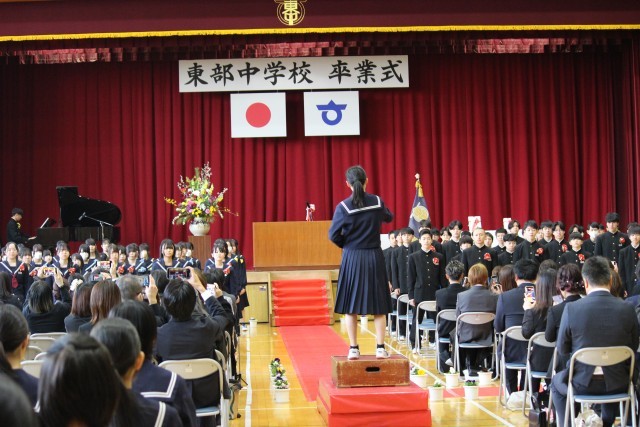続・卒業式の様子です。 卒業生による「手紙 ~拝啓十五の君へ~」の合唱の後、全校生徒で校歌を歌いました。 体育館いっぱいに歌声が響き渡り、卒業生と在校生の思いが重なる感動的な時間となりました。 そ...