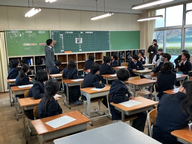 1時間目の1年生の学級活動の様子です。3組では、担任の先生が授業について説明していました。「中学校では教科ごとに先生が変わります」と話すと、生徒たちからは「おー」と驚き?期待?の声が上がっていました。...