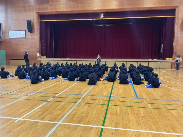 3時間目1年生は学年集会を行いました。学年職員の自己紹介、そしてどんな中学生になって欲しいかについて話がありました。話を聞く、後ろ姿から中学生としての自覚の芽生えが感じられます。