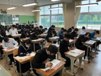 3年生の授業の様子です。 1組は数学、2組は美術、3組は英語の授業が行われていました。3年生の各教室では、学習内容だけでなく、評価の方法や今後の授業の進め方についても丁寧な確認が行われていました。真剣...