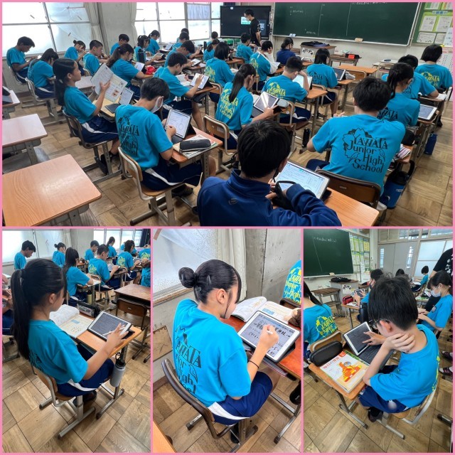 【10/6 反応するまでの時間】 公開日 2025/10/06 更新日 2025/10/06 2年生 2年生の理科の授業。刺激に対する反応のしくみについて学習しています。落下するものさしをつかむまでの時間を調べる実験をまとめています。意識して起こる反応では、脳が関わるため、練習や経験によって反応するまでの時間を変化させることができることを理解しました。