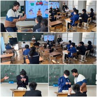今週末に控えた飛翔祭「体育の部」に向けて、ブロックカラーの衣装を身につけて、あいさつ運動を行っています。
