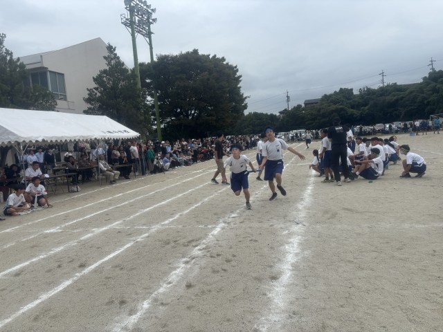 二年生全員リレーの様子。