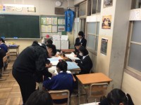 ふれあい体験ができない生徒は、赤ちゃん人形を使って模擬体験をしました。