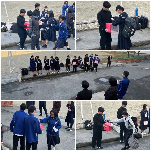 昇降口前には昨日よりも多くの生徒が並んでおり、活気が出ています。