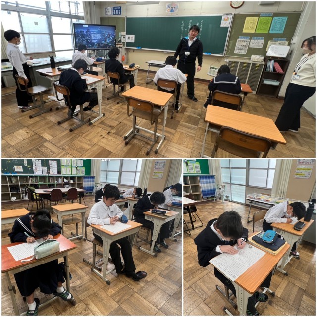 【11/6 理由を読み取ろう】 公開日 2025/11/06 更新日 2025/11/06 学校の様子 12・14組の国語科の授業。「本番で自分の力を出すために」の文章を読んで、問題に答えています。文章をよく読んで、筆者が考えた理由を読み取ります。二人の先生が生徒の活動を支援しています。