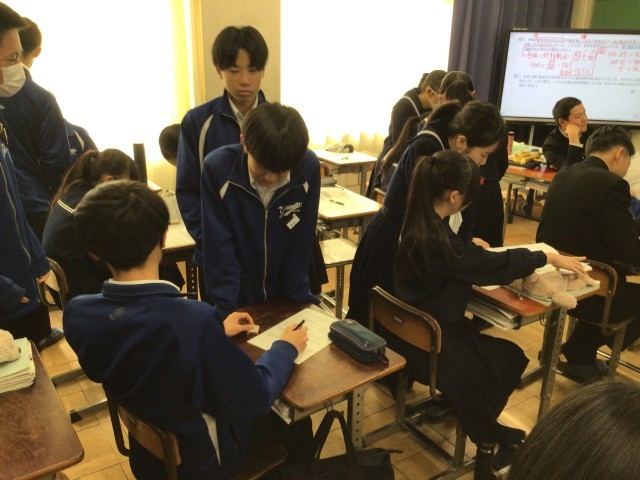 ワークシートの問題についても、友達と教え合いながら理解を深めていました。