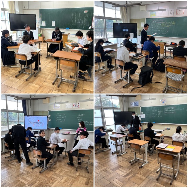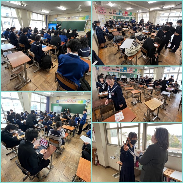 【12/23 学級活動2】 公開日 2025/12/23 更新日 2025/12/23 学校の様子 3年生と10~14組の学級活動の様子。3年生にとって、冬休みは進路選択をする上でとても大切な期間。高校入試に関する話を聴いているクラスがあります。通知表を受け取る前の緊張感がありつつ、リラックスしている雰囲気もあるようです。10~14組では、3学期の目標を立てています。すでに進級を意識している姿が見られます。令和8年も八中生にとってよい一年となりますように…。