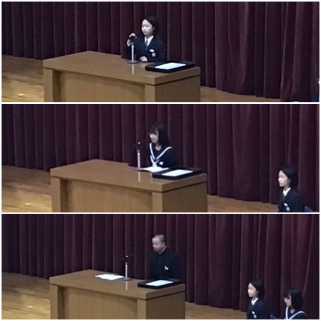 各学年の代表生徒による意見発表では、2学期を振り返って成長したことや、3学期に向けた目標などを話しました。