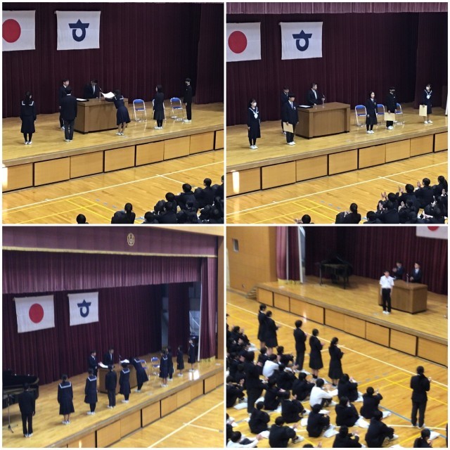 終業式の後には、作品応募の表彰があり、多くの生徒が賞状を受け取りました。