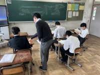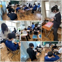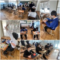 【1/21 付せんづくり】 公開日 2026/01/21 更新日 2026/01/21 学校の様子 10・11・12・13・14組の生徒が付せんを作っています。バンダ・タヌキ・ブタ・キツネ・ネコの中から付せんに貼りたいのを選んで作ります。型紙で動物を形取り、輪郭に沿ってはさみで紙を切ります。細かい作業ですが、みんな集中してがんばっています。