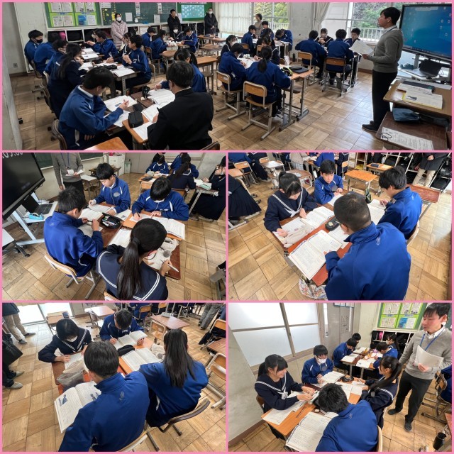 【1/27 人物像を捉える】 公開日 2026/01/27 更新日 2026/01/27 2年生 2年生の国語科の授業。「走れメロス」の冒頭の場面から、メロスと王の人物像を話し合っています。司会者を中心に話し合いが進んでいます。担当教員はそれぞれのグループの様子を観察し、声をかけています。