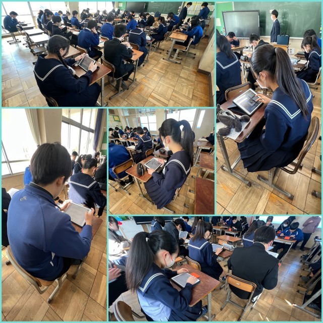 【2/9 私たちの課題】 公開日 2026/02/09 更新日 2026/02/09 3年生 3年生の社会科の授業。持続可能な社会を目指して、現代社会における課題を取り上げ、レポートを作成しています。政治・経済、人権・平和、伝統・文化、環境・科学・技術など、さまざまな分野からテーマを選び、統計や写真などの資料を活用して、自分の考えをまとめます。どのような提案が完成するのか楽しみです。