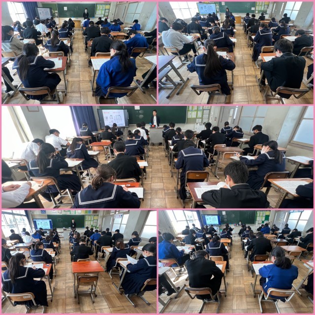 【2/13 4期テスト2日目】 公開日 2026/02/13 更新日 2026/02/13 学校の様子 1,2年生は4期テストの2日目です。今日は各学年2教科のテストを行っています。今年度最後の定期テストが終わりました。これまでの学習の取り組みを振り返り、来週からの学習につなげましょう。(画像は上から1年生、2年生、10~14組の様子です。)