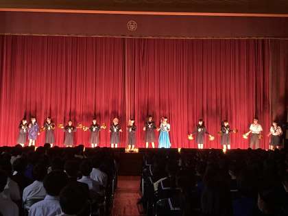 【飛翔祭 文化の部1 開幕】 公開日 2023/11/08 更新日 2023/11/08 学校の様子 「飛翔祭文化の部 開幕だー!」 生徒会のオープニングで幕開けです。 〈校長先生の話〉 「一生懸命はかっこいい。目と耳と心で感じ取ってほしいです。」