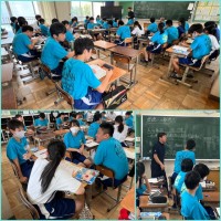 【4/17 1 minute challenge】 公開日 2024/04/17 更新日 2024/04/17 3年生 3年生の英語科の授業。 授業の開始時に単語チェックシートを使って、英単語の発音練習をします。 生徒同士で発音を聴き取り、時にはアドバイスをします。 教師は巡回しながら、生徒に適切な支援をします。 毎時間の積み重ねが大切です。