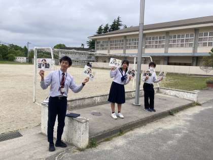 【5/23 生徒会 あいさつ運動】 公開日 2024/05/23 更新日 2024/05/23 学校の様子 3年生が修学旅行中のため、2年生の生徒会役員がいつものように元気なあいさつで八中生を迎えています。