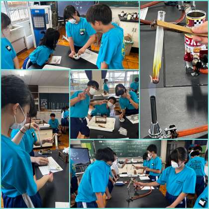 鉄と硫黄が結びつく化学変化の実験をしています。