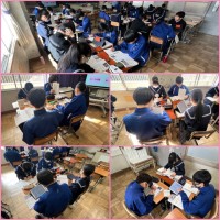 【1/24 クイズで復習】 公開日 2025/01/24 更新日 2025/01/24 2年生 2年生の理科の授業。オームの法則と電力に関する復習をしています。タブレット端末のクイズアプリを使って生徒は問題を解きます。クイズ形式だから、互いに競いながらも楽しく復習できているようです。