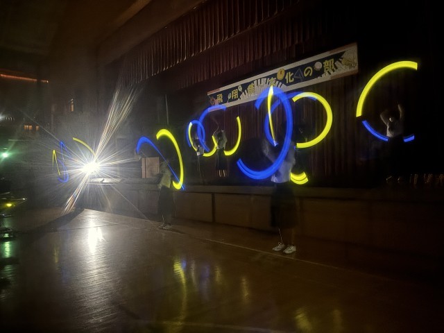 学校の様子 2年生の学習発表の様子。 林間学校で学んだこと発表したり、光の舞を披露したりしていました。