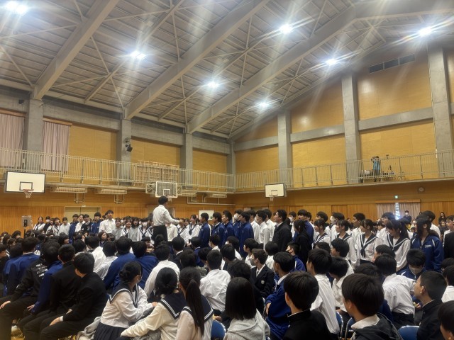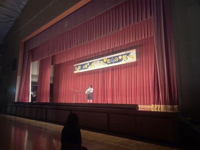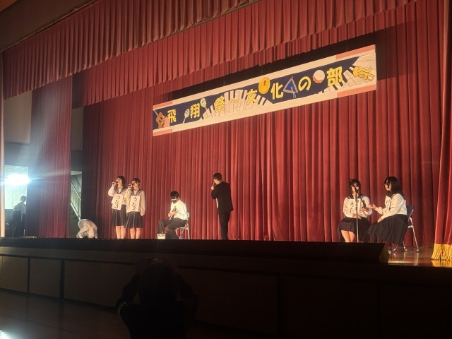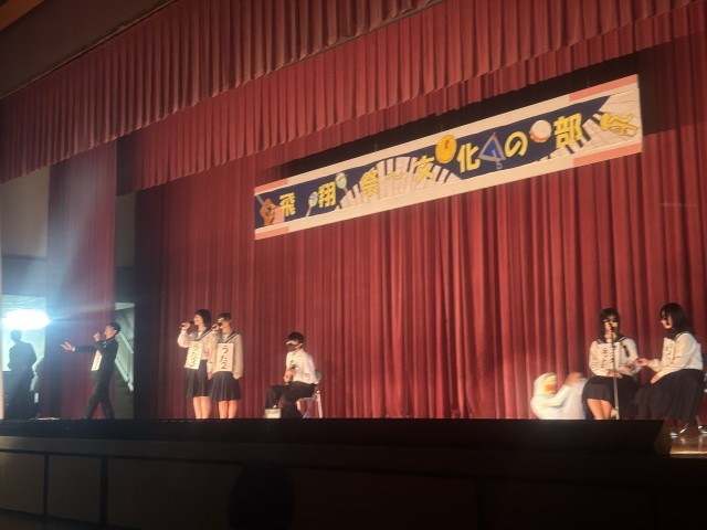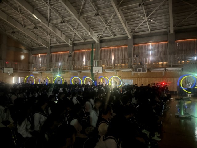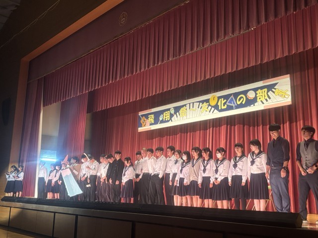 学校の様子 放課後の体育館。 飛翔祭「文化の部」の準備が終わり、吹奏楽部がリハーサルをしています。 飛翔祭のスローガン 「笑え!つくれ!八中のキセキ ♯主役は君だ!」 明日は八中生全員が活躍し、一日笑顔で過ごせますように…。