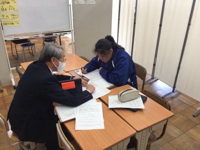 いよいよ、三年生の進路に向けた学習も大詰めとなってきました。日本語適応教室に通っている生徒も今後の流れを担当教諭と確認していました。