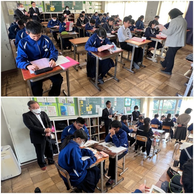 知多市教育委員会教育長と指導主事が来校され、八幡中学校の教育活動をご覧いただきました。