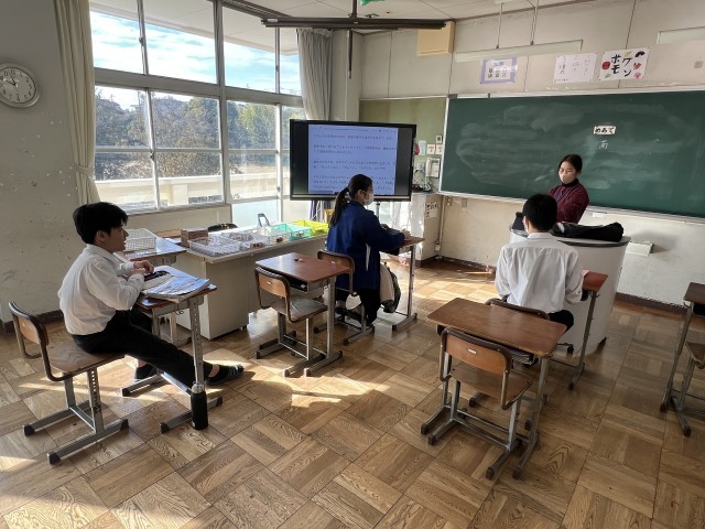 みんなの前で発表するのは緊張しますが、どの生徒もしっかりと伝えることができています。