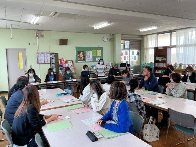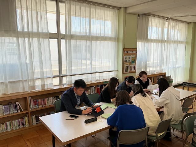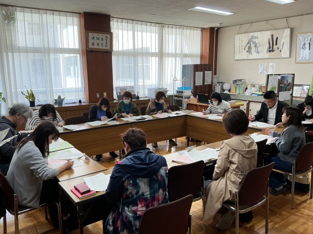 昨年度までの取組を踏まえ、教員同士で考えを伝え合います。