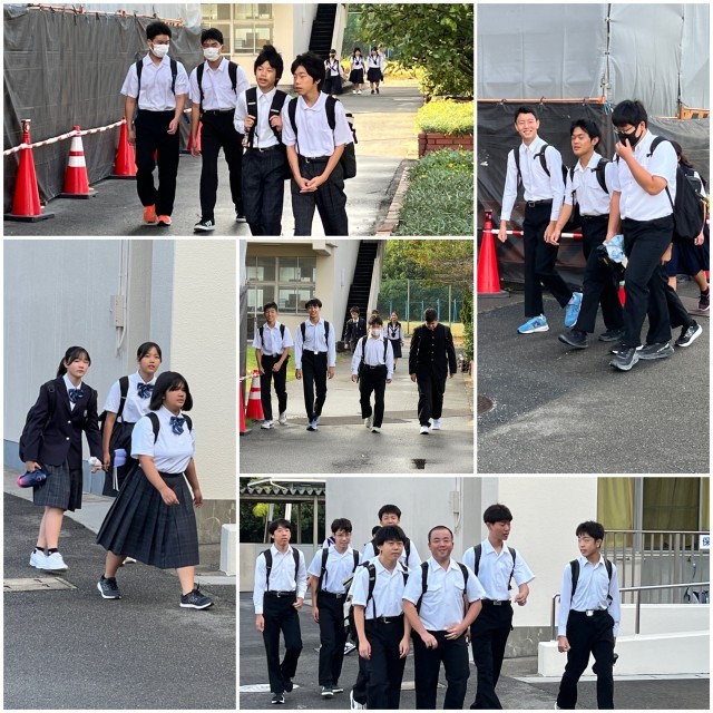 体操服や八中Tシャツで登校している生徒も多く見られます。