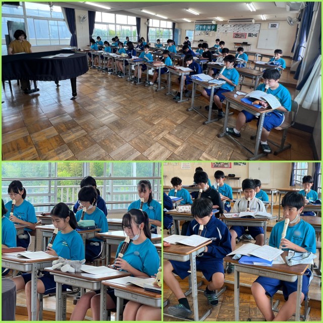 低い音の息の出し方に気をつけて、アルトリコーダーで「凱旋行進曲」などを演奏しています。