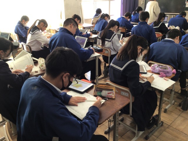 よりよい作品に仕上げるための基礎となる下書きに集中して丁寧に取り組んでいました。