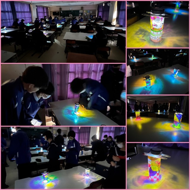 生徒全員のランプシェードが美しく光っています。