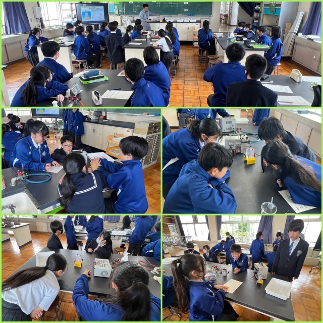 まっすぐな導線に電流を流して、磁界の向きを調べています。