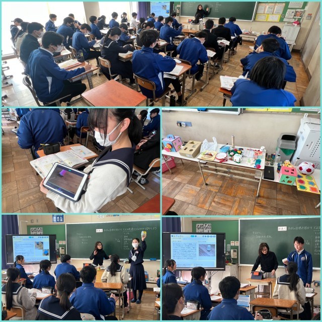 生徒は、製作したおもちゃや動画を見せながら発表しています。